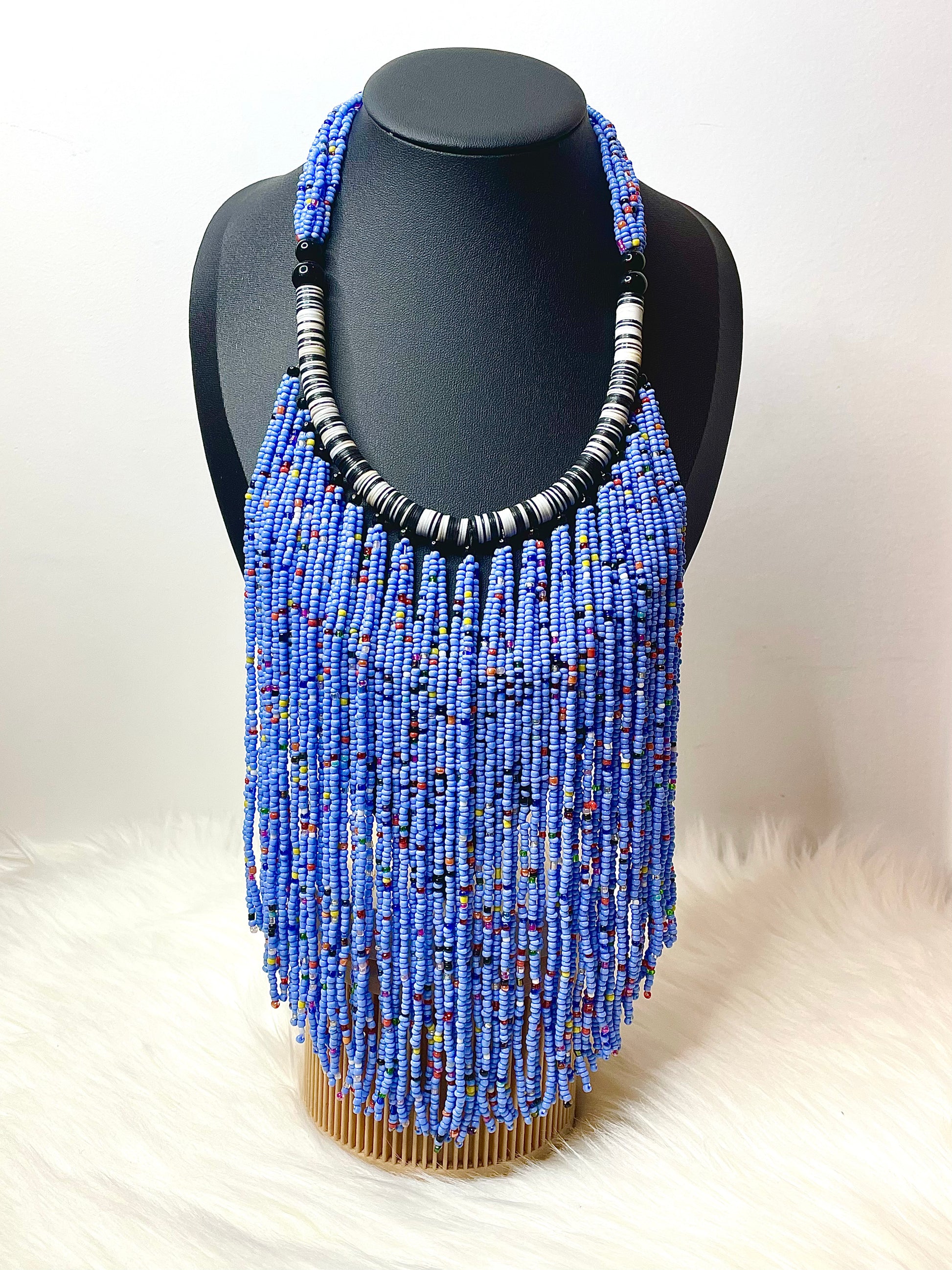 Make a statement with the Bold Beaded Blue Necklace by AfroBold, where modern African design meets timeless elegance. This handcrafted piece features vibrant blue beads intricately arranged to embody bold cultural fashion and celebrate African-inspired artistry. Perfect for adding a pop of color to casual outfits or elevating formal looks, this necklace reflects AfroBold’s unique African-inspired designs. Whether worn for a special event or as an everyday accessory, it’s a striking blend of tradition and contemporary style. Shop AfroBold’s custom cultural jewelry collection to celebrate heritage and individuality today!